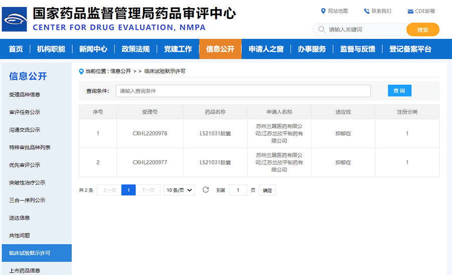 近日,兰晟医药自主研发的抑郁症新药LS21031获得国家药品监督管理局(CDE)许可新药临床试验。